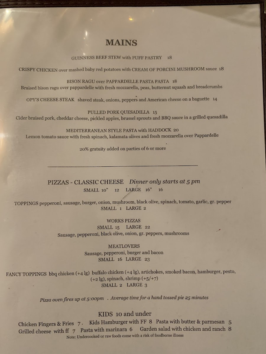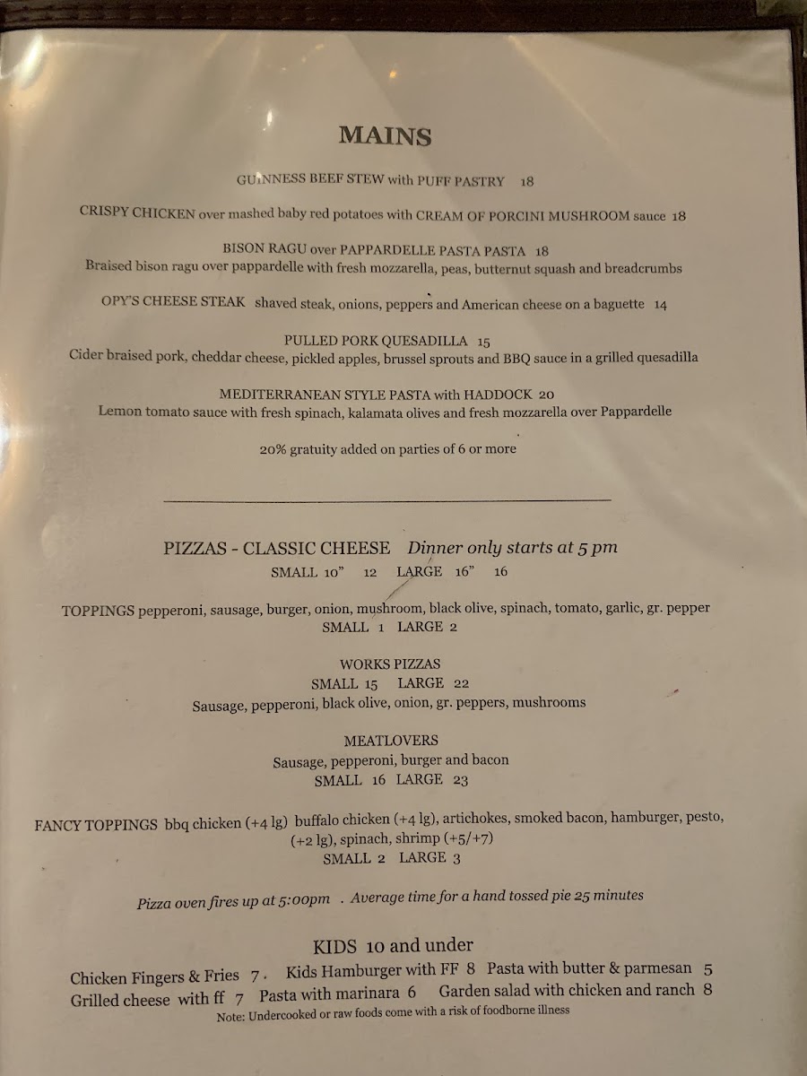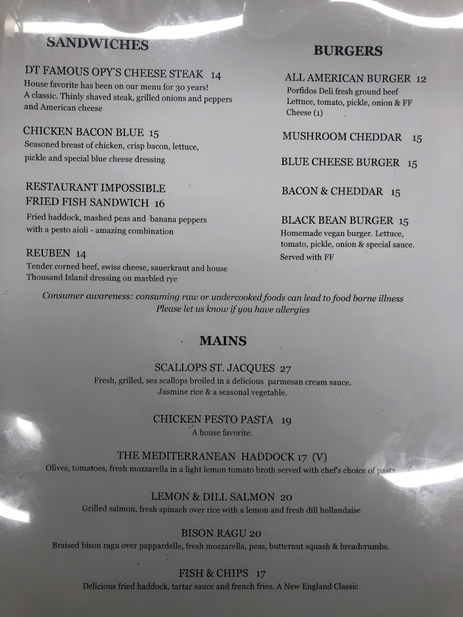 From a reviewer’s perspective, the menu at Dutch Treat feels like a confident summary of what the restaurant does best: approachable comfort food with enough variety to satisfy almost any diner. The experience often starts strong with appetizers like Bacon & Chive Tater Kegs, Homemade Crab Fritters, Maryland Crab Cakes, or the crowd-pleasing Korean BBQ Chicken Wings, all of which set a casual yet indulgent tone. The salad selection, including Cobb Salad, Caesar Salad, Summer Salad, and Caprese Salad with Grilled Salmon, offers lighter, well-balanced options without feeling like an afterthought. Burgers and sandwiches clearly anchor the menu, from the All American Burger and Blue Cheese Burger to the more creative Breakfast Burger, Parmesan Portobello Sandwich, and Beer Battered Fish Sandwich, each designed to be hearty and satisfying. On the mains side, dishes such as Guinness Beef Stew with Puff Pastry, Crispy Chicken over Mashed Baby Red Potatoes with Cream of Porcini Mushroom Sauce, and Bison Ragu over Pappardelle Pasta show a willingness to go beyond standard pub fare while still keeping flavors familiar. The drink menu rounds everything out thoughtfully, featuring draft and craft beers like Allagash White, Fiddlehead IPA, and Guinness, alongside accessible wines such as Josh Cabernet and Woodbridge Chardonnay. Classic spirits, specialty cocktails like the Dutch Cosmo and Tito’s Mule, and refreshing mocktails including Sweet Diana and Rosemary Mule ensure that every guest finds something to enjoy. Overall, the Dutch Treat menu comes together as a well-rounded conclusion to the dining experience-comforting, generous, and clearly built to please both locals and travelers alike.